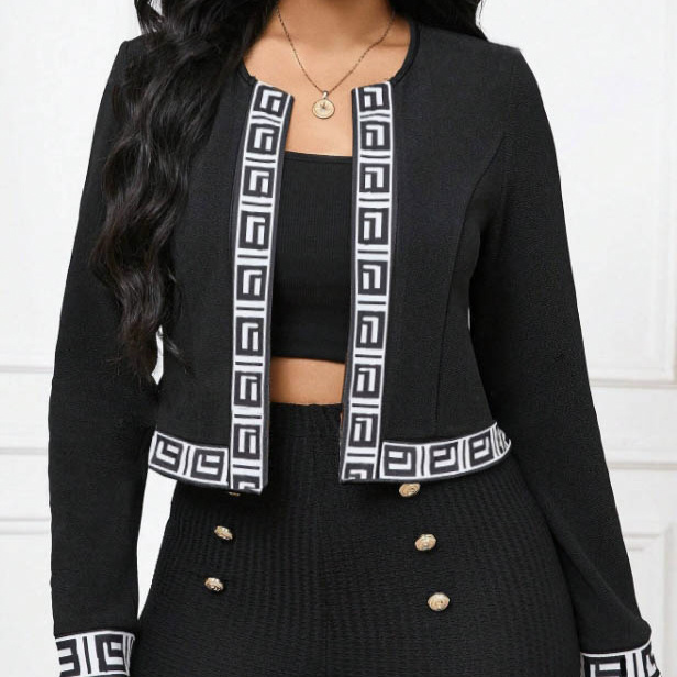 Ladies’ Open Collar Printed Long Sleeved Suit Jacket